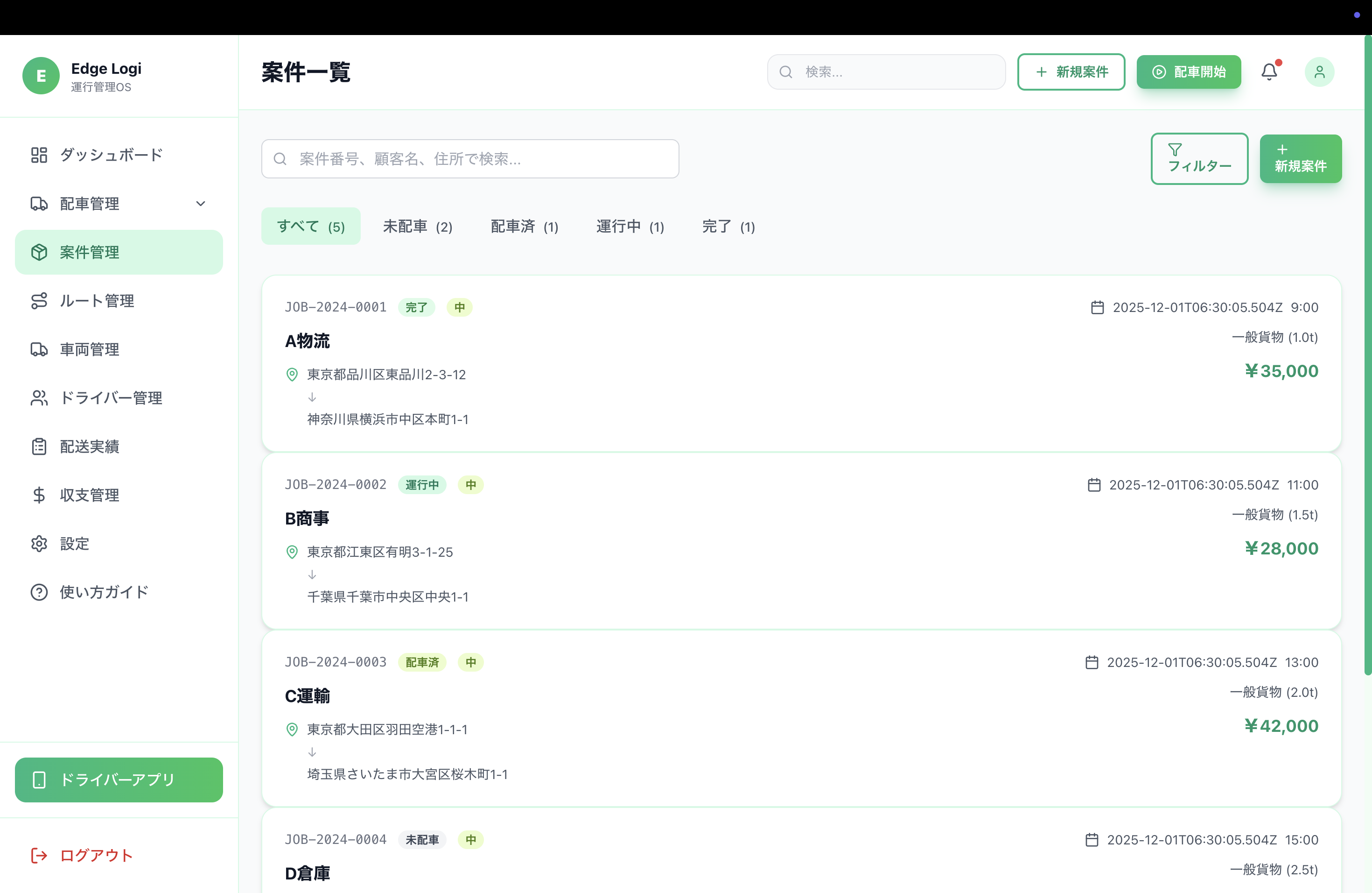 Edge Logiは、物流・運送業のための統合管理プラットフォームです。